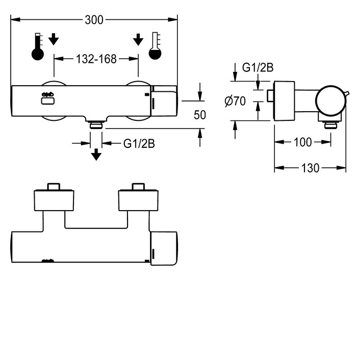 F5E-Therm Termostatická nástěnná baterie DN 15 k montáži na omítku, pro sprchy. Optoelektronicky řízená, k připojení na teplou a studenou vodu. Termostat s kovovou rukojetí a nastavitelným teplotním dorazem s pojistkou proti přetočení. S možností ruční termické dezinfekce. Řídicí elektronika, kartuše s elektromagnetickým ventilem, lithiová baterie 6 V (CR-P2) a dotykový senzor v celokovovém tělese s přípojkou ruční sprchy, G 1/2 B, leštěná chromovaná mosaz. S nastavitelnými a uzavíratelnými přípojkami se zábranou zpětného toku a sítky, zcela zakrytými hloubkově nastavitelnými šroubovacími rozetami. Aktivované hygienické proplachování 24 hodin po posledním použití, bezpečnostní vypnutí při trvalé reflexi a ukládání statistických údajů. S možností nastavení funkčních parametrů a komunikace pomocí volitelného obousměrného dálkového ovládání nebo volitelného C-modulu s nezbytnou aplikací.