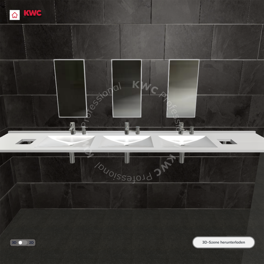 S 3D konfigurátorem umyvadel KWC Professional můžete do moderních sanitárních místností vnést flexibilitu a individualitu. Zažijte přímo online, jak se vaše umyvadlo ve 3D tvoří, a přesvědčete se o rozmanitých možnostech plánování našich řešení umyvadel MIRANIT. Přiložte plán ke své dokumentaci a využijte výhod jednoduché přípravy cenové nabídky.