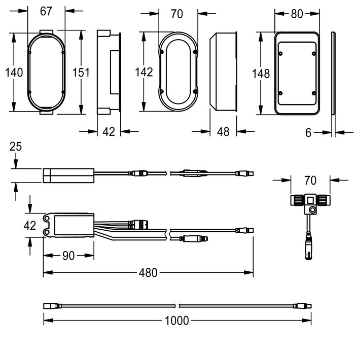 Elektronikmodul EM5 mit ID 02160 und Elektro-T-Verteiler zur Wandeinbaumontage mit Wandeinbaudose und Abdeckung aus Kunststoff 150 x 80 mm. Zur Einbindung in das Wassermanagementsystem AQUA 3000 open, 24 V DC.