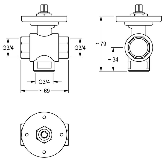 3-Wege-Ventil DN 20 zur Durchführung einer thermischen Desinfektion kalt- und warmwasserseitig bei Einsatz eines nachgeschalteten Thermostaten.
