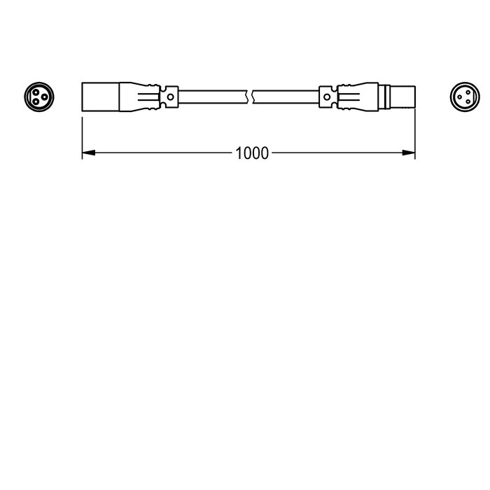 Sensor-Verlängerungskabel, A3000 open, 3-polig, Länge 1 m.