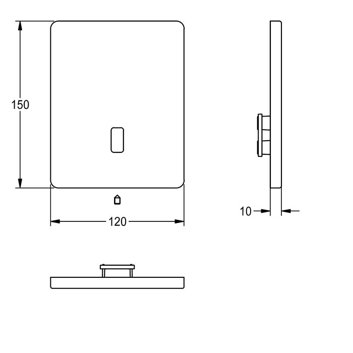 Edelstahlabdeckplatte 120 x 150 mm, mit Sensorhalterung und Gewindestift.