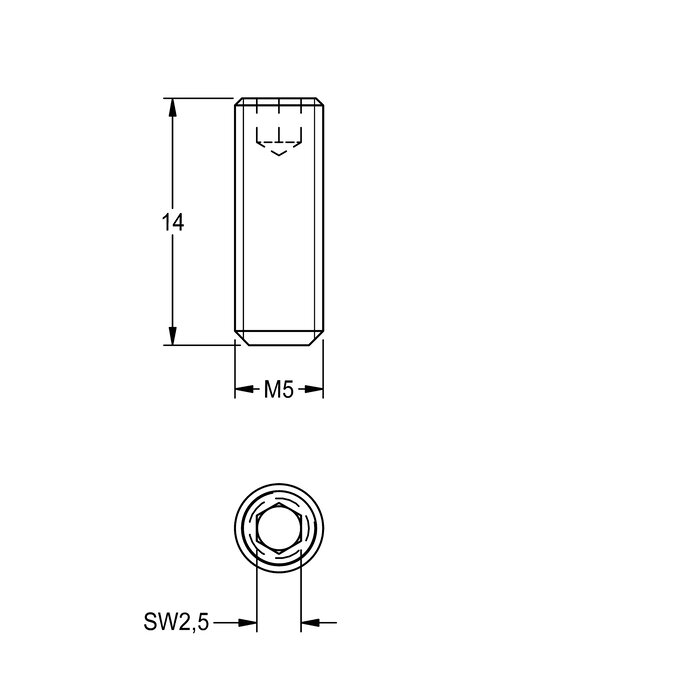 Gewindestift M5 x 14 aus Edelstahl, DIN 916-A2, Inhalt 10