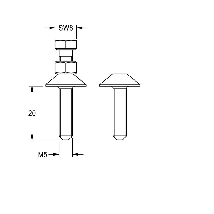 Sicherheitsschraube M5 x 20, Messing verchromt, Inhalt 2