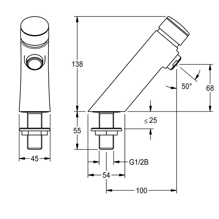 F3S Selbstschluss-Standventil DN 15 für Waschanlagen. Selbstschlusskartusche, hydraulisch gesteuert, kolbenlose Bauart, selbsttätig schließend, Fließzeit stufenlos einstellbar. Zum Anschluss an vorgemischtes Warmwasser oder Kaltwasser. Gehäuse Messing poliert verchromt. Luftsprudler mit integriertem Durchflussmengenregler 3,0 l/min.