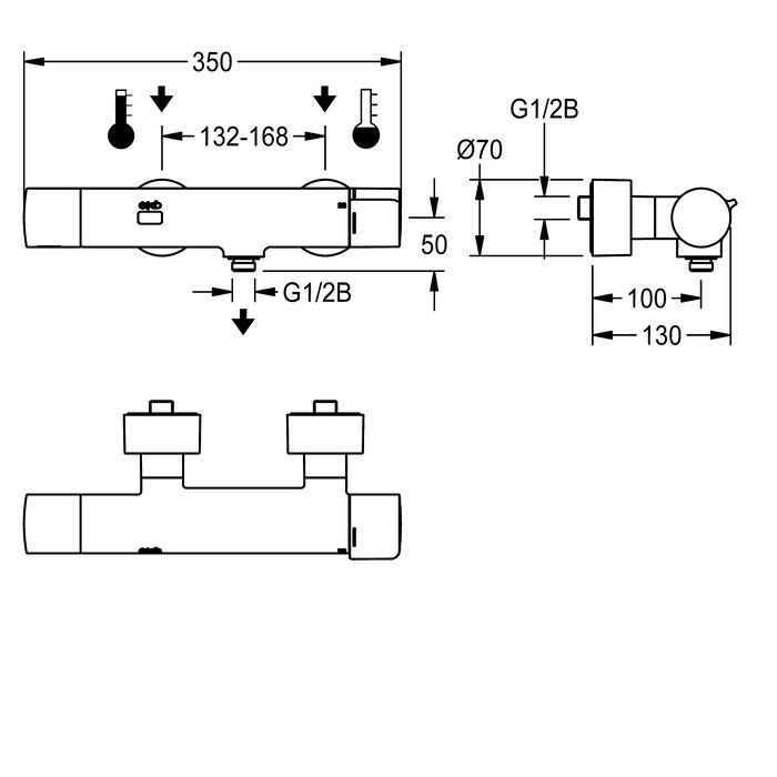 F5E-Therm Thermostat-Wandbatterie DN 15 zur Aufputzmontage, für Duschanlagen. Elektronisch gesteuert, zum Anschluss an Warm- und Kaltwasser. Vormontierte C-Moduleinheit zur funkgesteuerten Parametrierung, Auslesen von Statistikdaten, Realisierung vordefinierter Kalenderfunktionen sowie Gruppierung der Armaturen zur Durchführung vordefinierter Steuerfunktionen über notwendige App. Thermostat mit Metallgriff und einstellbarem, verdrehsicherem Temperaturanschlag. Mit Möglichkeit der manuellen thermischen Desinfektion. Steuerelektronik, Magnetventilkartusche, 6 V Lithium Batterie (CR-P2) und Tast-Sensor im Ganzmetallgehäuse mit Handbrauseanschluss, G 1/2 B, Messing poliert verchromt. Mit verstellbaren und absperrbaren Anschlüssen mit Rückflussverhinderern und Sieben, vollständig abgedeckt durch tiefenverstellbare Schraubrosetten. Aktivierte Hygienespülung 24 Stunden nach letzter Betätigung, Sicherheitsabschaltung bei Dauerreflexion und Speicherung von Statistikdaten.
