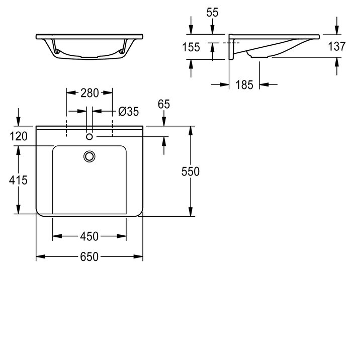 Abmessungen 650 x 150 x 550 mm (B x H x T)