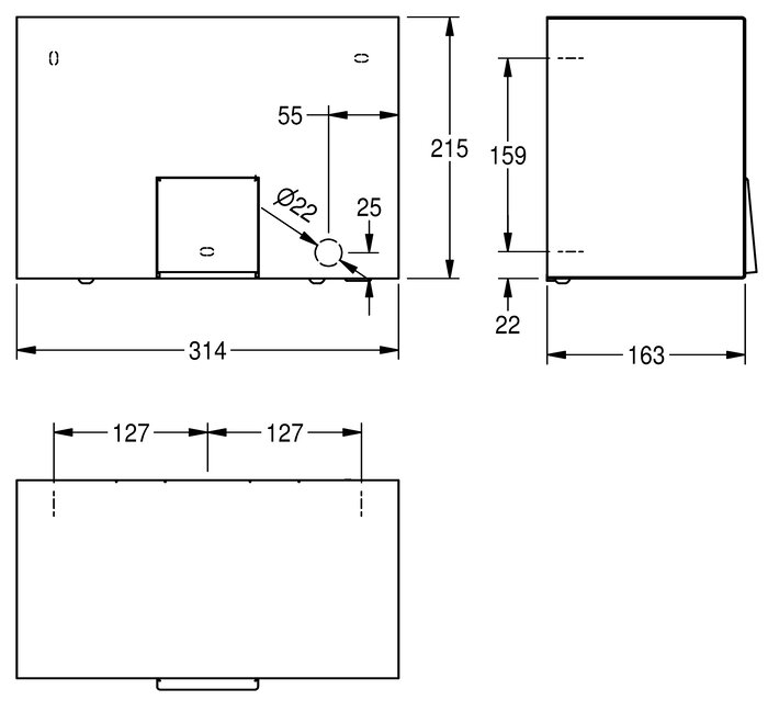 Abmessungen 314 x 215 x 163 mm (B x H x T)