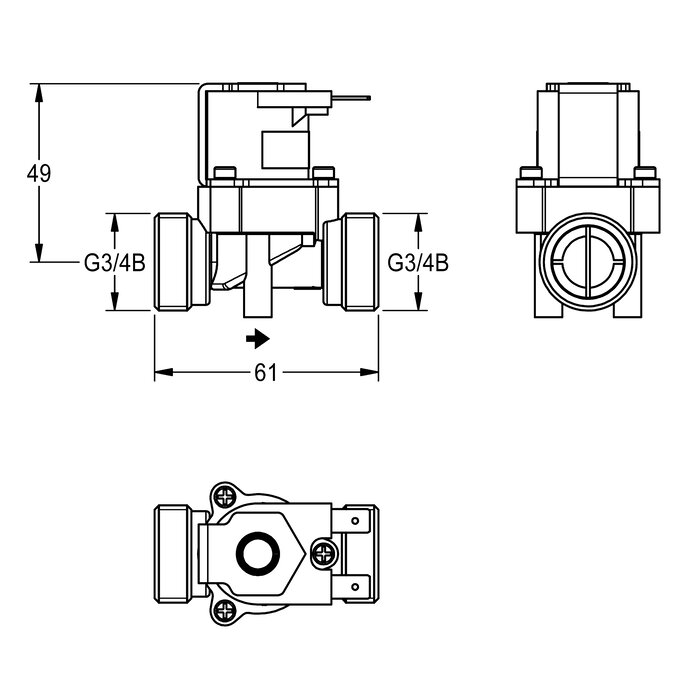 Magnetventil - A3000 open, Anschlüsse beidseitig G 3/4 B, mit Sieb, 24 V