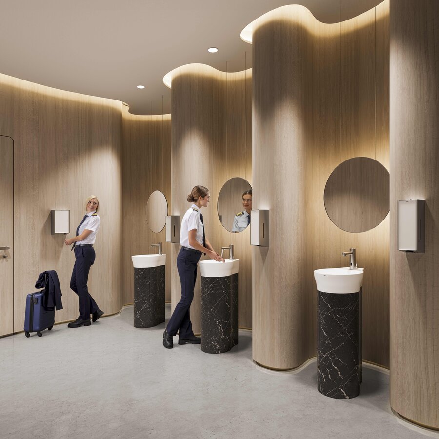 Formvollendete Intelligenz für öffentliche Waschräume