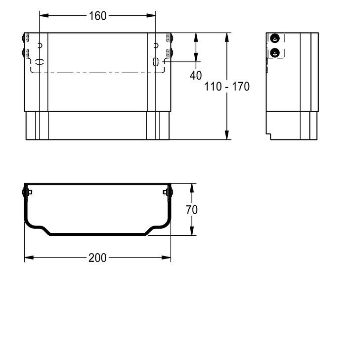 Gehäusemaße ca. 200 x 110 bis 170 mm (B x H)
