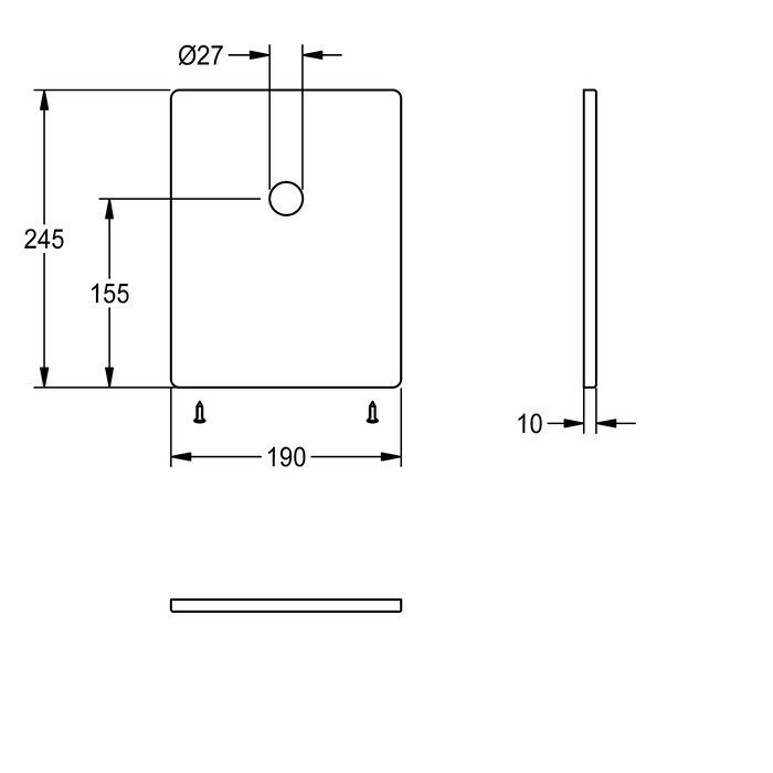 Edelstahlabdeckplatte 190 x 245 mm, mit Bohrung für Piezo-Taster und Befestigungsschrauben.