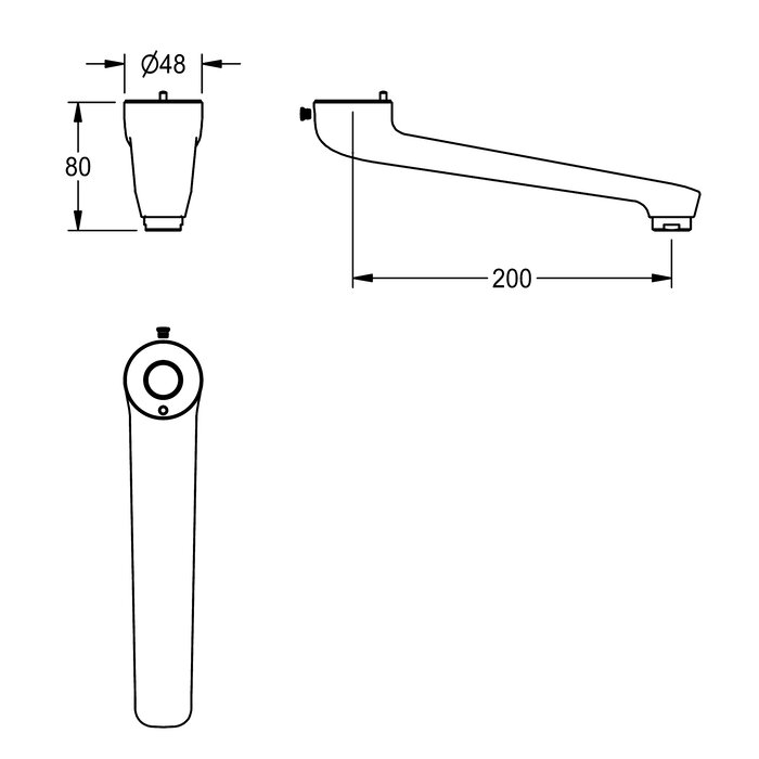 Arretierbarer Schwenkauslauf für F4 Wandbatterien, mit Laminarstrahlregler 9,0 l/min, Ausladung 200 mm.