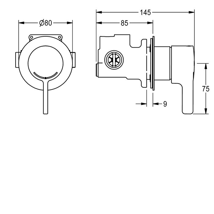 F5L-Therm Funktionsblock DN 15 mit integrierter Mischkartusche und Vorrichtung für optionale Hygieneeinheit zur Durchführung einer automatischen Hygienespülung, programmgesteuerten thermischen Desinfektion (zusätzliche Bypass-Magnetventilkartusche notwendig) und Speicherung von Statistikdaten. Mit Hebelkappe, Rosette und verdeckter Schraubbefestigung.