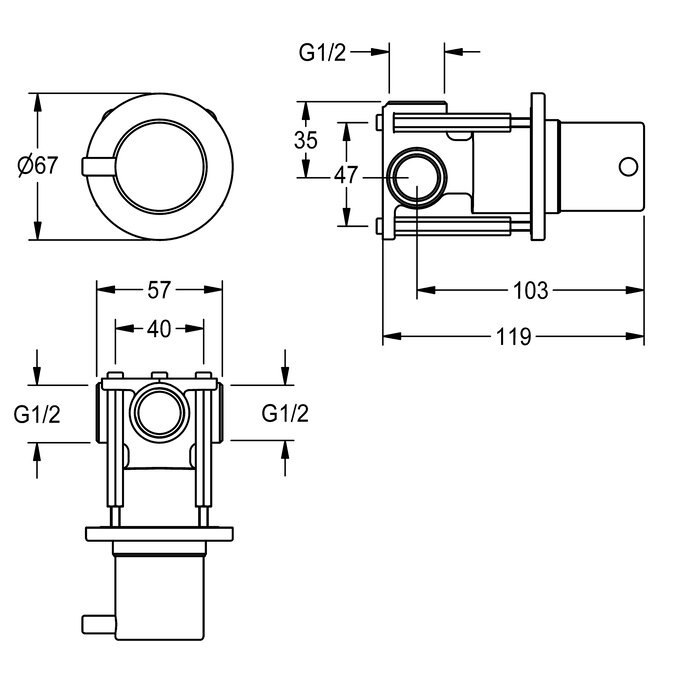 Umsteller zum Wechseln zwischen Kopf- und Handbrause für Duschpaneel, mit Befestigungsschrauben.