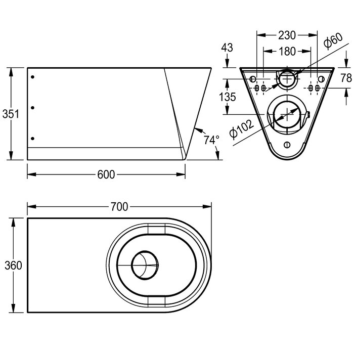 Abmessungen 360 x 351 x 700 mm (B x H x T)