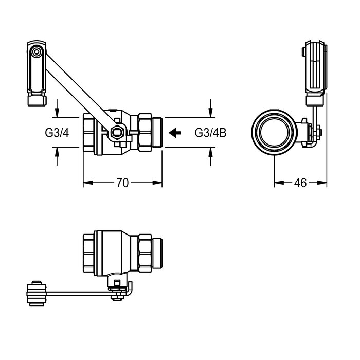 Kugelhahn aus Edelstahl, mit Hebel links, zur Notdusche mit Zugstangenbetätigung (ab Juli 2014)