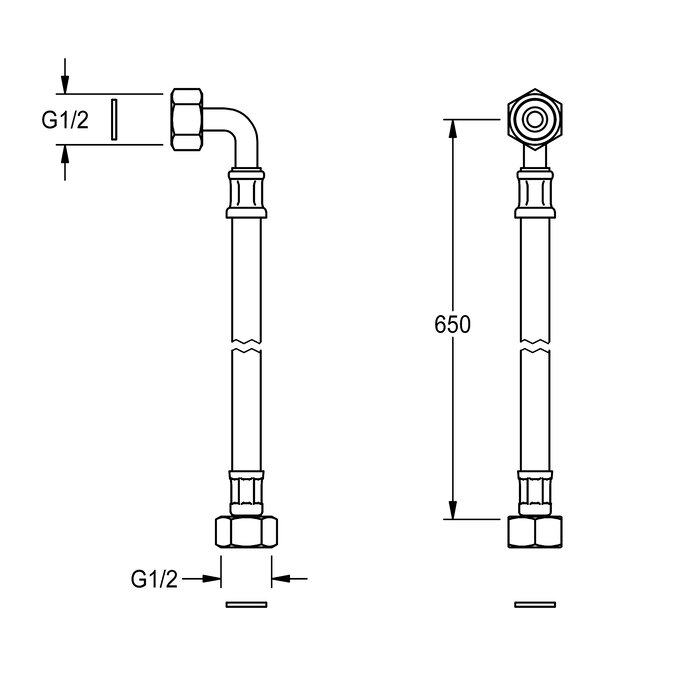 Edelstahl-Anschlussschlauch, G1/2 x G1/2 mit Winkel, Länge 660 mm.