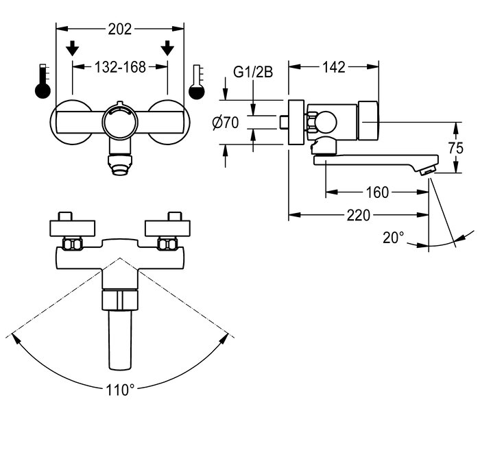 F3S-Mix Selbstschluss-Wandbatterie DN 15 als Eingriffmischer zur Aufputzmontage mit arretierbarem Schwenkauslauf, für Waschanlagen. Selbstschluss-Mischkartusche, hydraulisch gesteuert, kolbenlose Bauart, selbsttätig schließend, Fließzeit stufenlos einstellbar. Mit einstellbarem und verdrehsicherem Temperaturanschlag. Zum Anschluss an Warm- und Kaltwasser. Gehäuse Messing poliert verchromt. Laminarstrahlregler mit integriertem Durchflussmengenregler 6,0 l/min. Mit verstellbaren Anschlüssen, Rückflussverhinderern, Sieben und Schraubrosetten. Ausladung 220 mm.