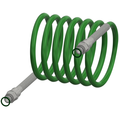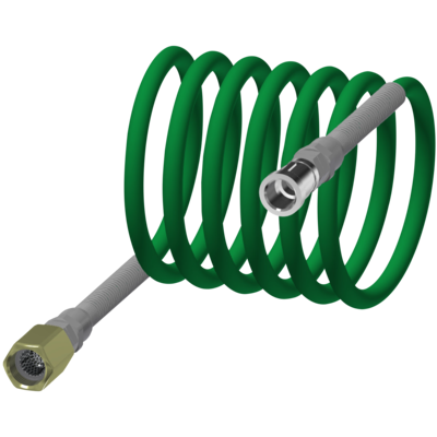 Augen- und Gesichtsdusche mit Spiralschlauch zur Montage an Wänden oder Labormöbeln, mit Handdusche, Spiralschlauch und Wandhalterung, erfüllt die Anforderungen der EN 15154-2 und ANSI Z358.1 - 2014, Gehäuse aus Kunststoff grün, mit Wandhalterung weiß, Schutzkappe mit Benutzerhinweis.