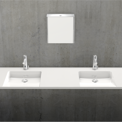 Die neu designten Waschtische der EXOS. Systemlinie von KWC  Professional lösen räumliche Herausforderungen ideal. Hochwertige Einzel- oder maßgefertigte Reihenwaschtische – auch barrierefrei – bieten abwechslungsreiche Ausstattungsoptionen, zum Beispiel in Bürogebäuden, Einkaufszentren, Wellnessbereichen oder Museen.