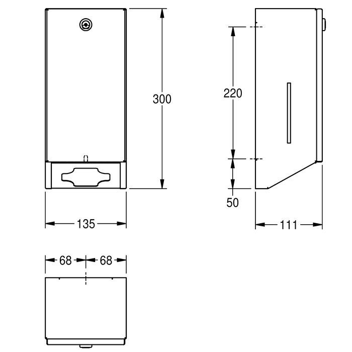 Abmessungen 135 x 300 x 111 mm (B x H x T)