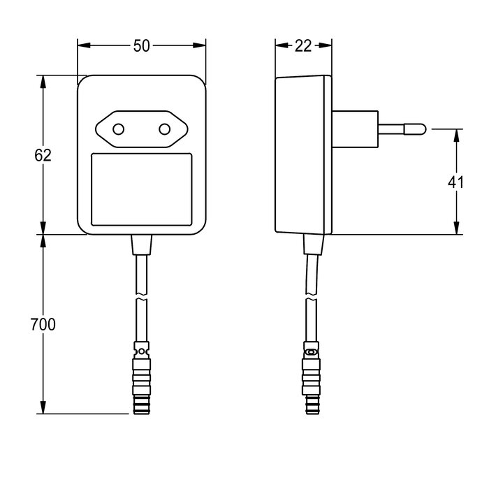 Plug-in power supply unit with EU connection, 100-240 V AC - 6.75 V DC, with energy buffer for safety shutdown of connected tap technology in the event of a mains voltage failure.
