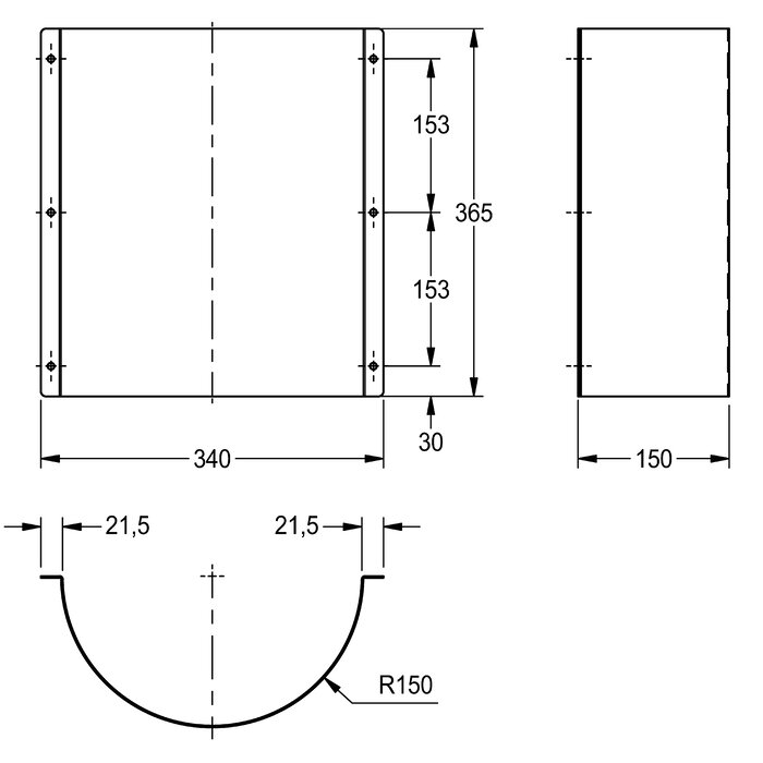 Dimensions 340 x 365 x 150 mm (W x H x D)