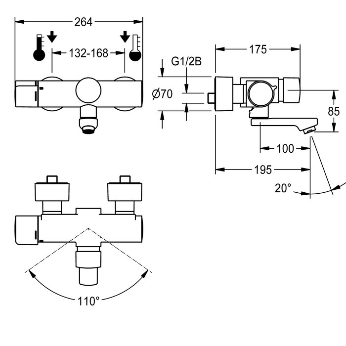 3600008676 - F5ST1102 - F5S - F5S-Therm self-closing thermostat wall-mounted mixer