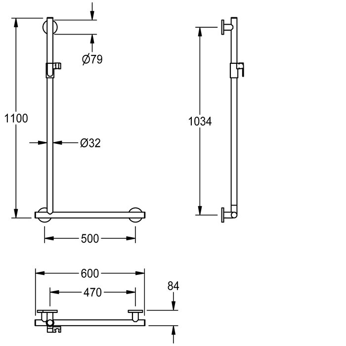 90° angled grab rail with hand shower holder