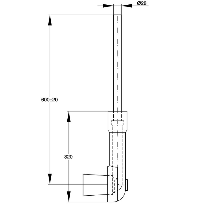 Flushing pipe for in wall installation, height adjustable, for connection of WC flush valves DN 20 and toilets.