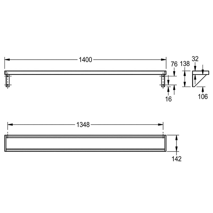 Dimensions 1400 x 138 x 142 mm (W x H x D)