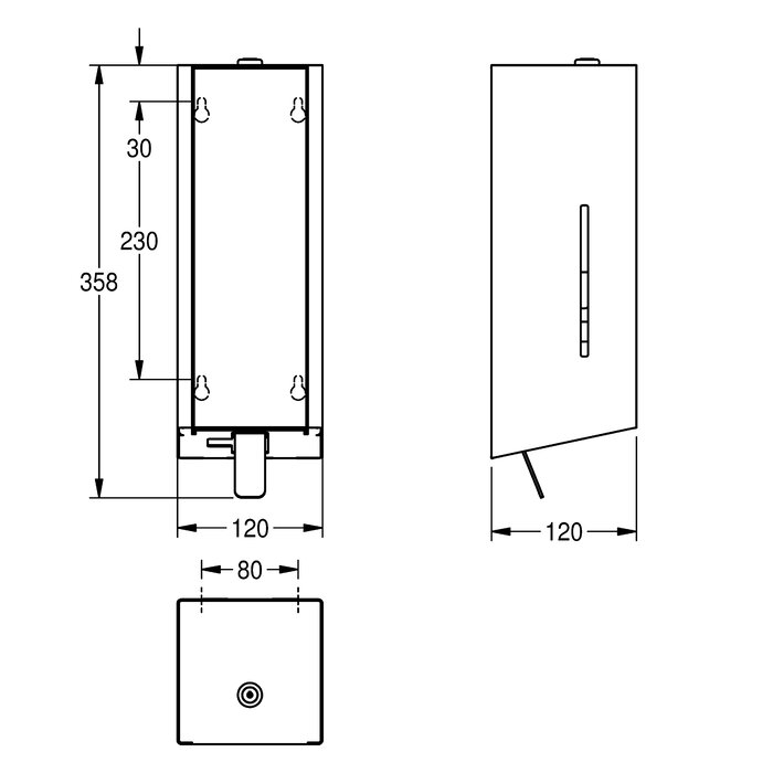 Dimensions 120 x 358 x 120 mm (W x H x D)