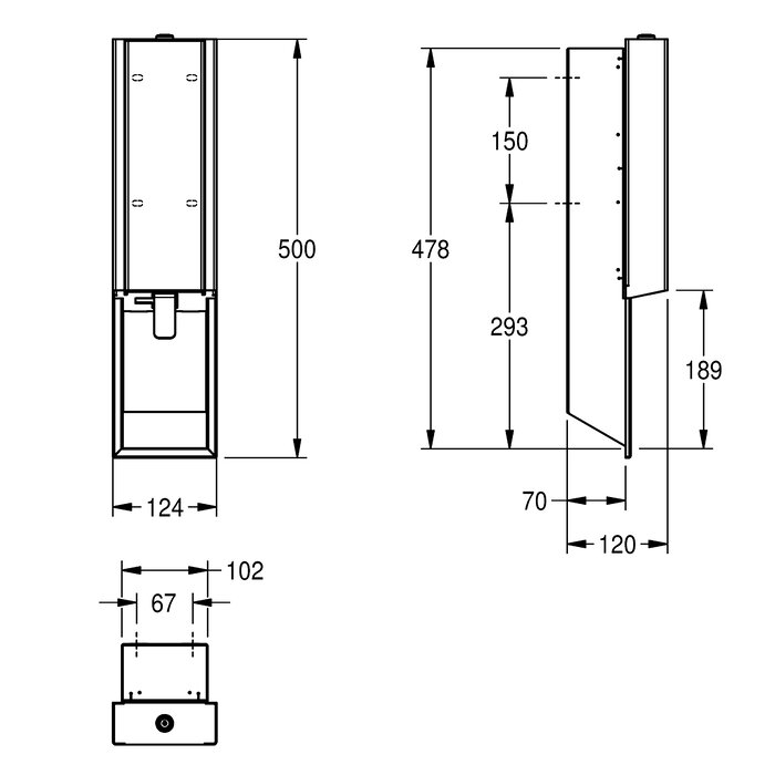 Dimensions 124 x 500 x 120 mm (W x H x D)