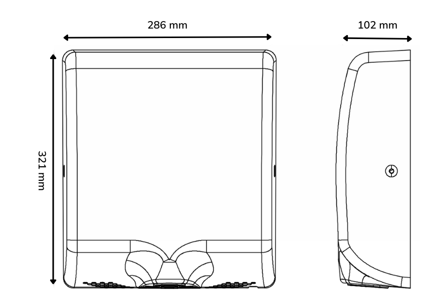 Dimensions 286 x 321 x 102 mm (W x H x D)