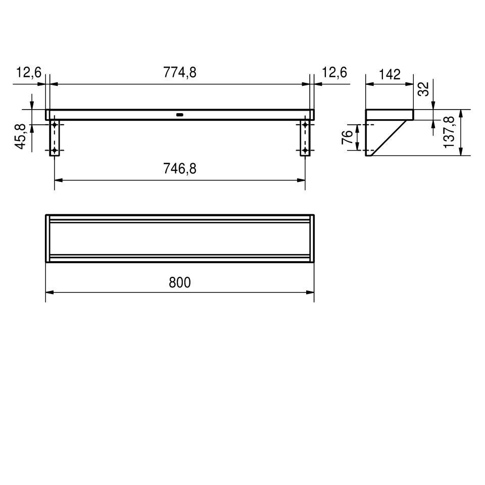 Dimensions 800 x 138 x 142 mm (W x H x D)