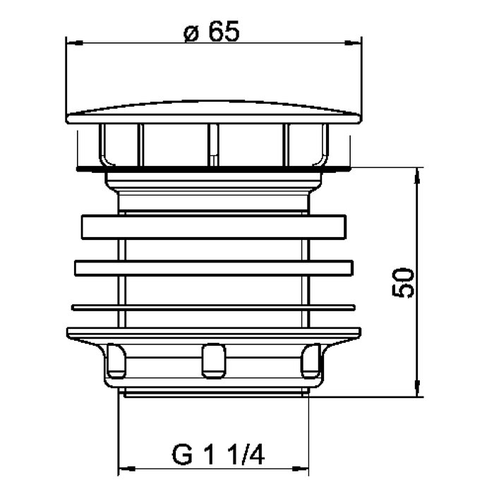 Dome waste valve, stainless steel/plastic stem valve, chrome-plated plug, with strainer, connection G 1 1/4 B.