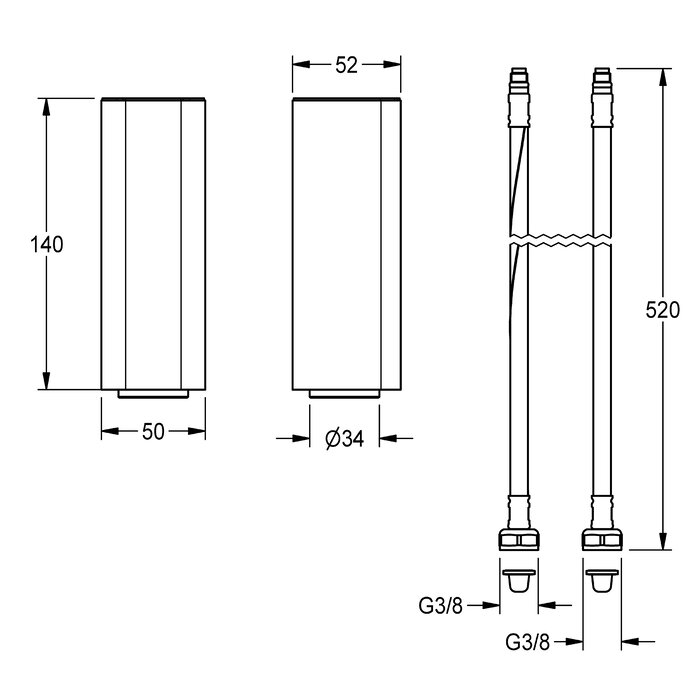 Zócalo para ampliar la carcasa de las griferías en 140 mm, para batería mural de mezclador monomando F5L. En latón cromado de alto brillo.