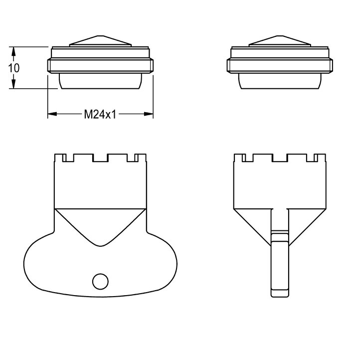 Aireador con protección antirrobo M 24 x 1, forma SLIM, con regulador de caudal integrado de 5,0 l/min y llave de montaje.