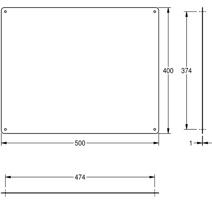 Dimensiones 500 x 400 x 1 mm (L x A x P)