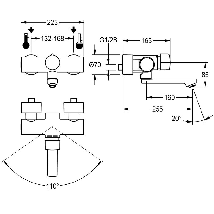 F5S-Mix Grifo mural con cierre automático DN 15 como mezclador monomando para instalación en superficie con salida orientable y bloqueable, para instalaciones de lavabo. Cartucho mezclador con cierre automático FRAMIC, con control hidráulico, sin mantenimiento y sin estancamiento, con tecnología de discos de cerámica, con cierre automático, independiente de la presión de flujo, gracias a su diseño de separación de medios. Duración de flujo ajustable de forma continua. Con tope de temperatura ajustable y protegido antigiro. Para la conexión al agua caliente y fría. Versión totalmente metálica, en latón cromado y de alto brillo. Aireador con regulador de caudal integrado de 3,0 l/min. Con conexiones ajustables y bloqueables con válvulas de retención y filtros, completamente ocultos por medio de rosetas atornillables con ajuste de profundidad. Longitud de 255 mm.