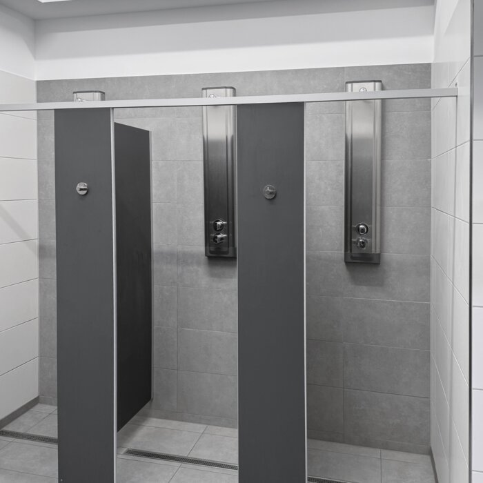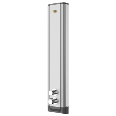 La zona de ducha está equipada con paneles de ducha de acero inoxidable F5ST prefabricados y, por tanto, fáciles de instalar, con una cómoda función de termostato.