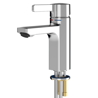 Los monomandos F5LM se combinaron con los lavabos de MIRANIT, robustos y fáciles de cuidar.