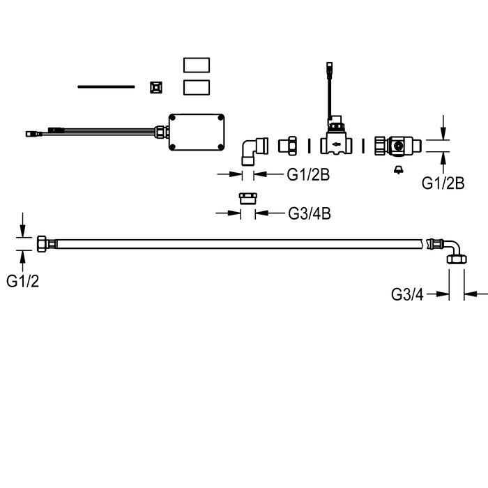 F5 Smart Urinal Unit -yksikkö asennukseen CAMPUS-riviurinaalin vedentuloalueelle. Vesiliitäntä esiasennettu, putkikaari vesiliitäntään DN 15 ja huuhteluputkeen, hanakokonaisuus jossa vesimääränsäätö mukaan lukien sihti, magneettiventtiili ja letku. Ohjausyksikkö suljetussa muovikotelossa langattomaan tiedonsiirtoon F5 Smart Urinal Sensor -sensorin kanssa. Valinnaisesti paristokäyttöinen 6 V:n litiumparistolla (CR-P2) ohjausyksikköä kohti tai erillinen jännitteensyöttö verkkolaitteella 6,75 V / 12 V DC.