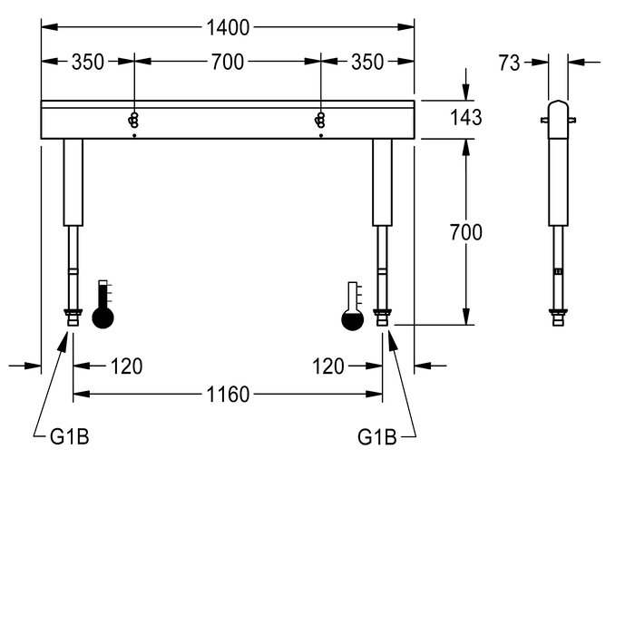 Dimensions du boîtier 1400 x 470 x 73 mm (L x H x P)