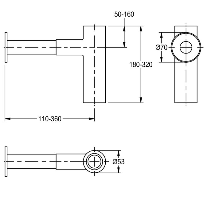 Siphon "clic" chromé brillant. Etirable (360 mm max.) et réglable en