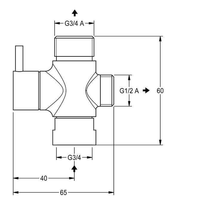 Inverseur pour pomme de douche, pour montage sur tuyau en saillie, pour l'inversion entre la douche plafonnière et la pomme de douche. Laiton chromé poli.