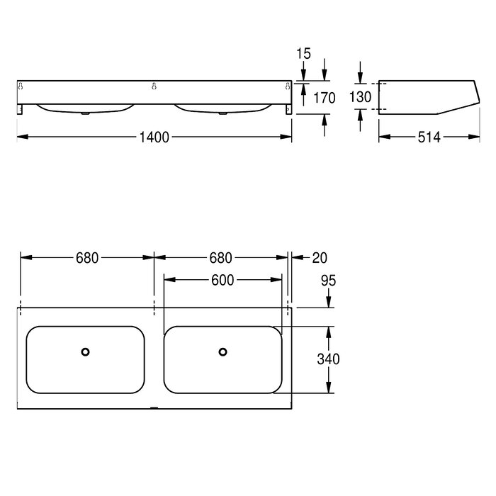Dimensions 1400 x 170 x 514 mm (L x H x P)