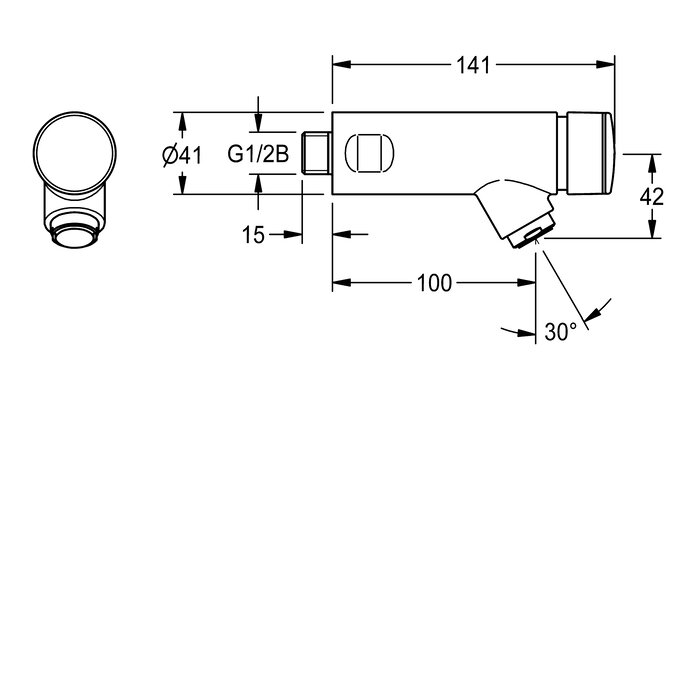Robinet mural à fermeture automatique F3S DN 15 pour le montage en saillie pour installations sanitaires. Cartouche à fermeture automatique, à commande hydraulique, construction sans piston, fermant automatiquement, durée d'écoulement réglable en continu. Pour le raccordement sur l'arrivée d'eau chaude prémélangée ou d'eau froide. Corps en laiton chromé poli. Mousseur à régulateur de débit intégré de 3,0 l/min.