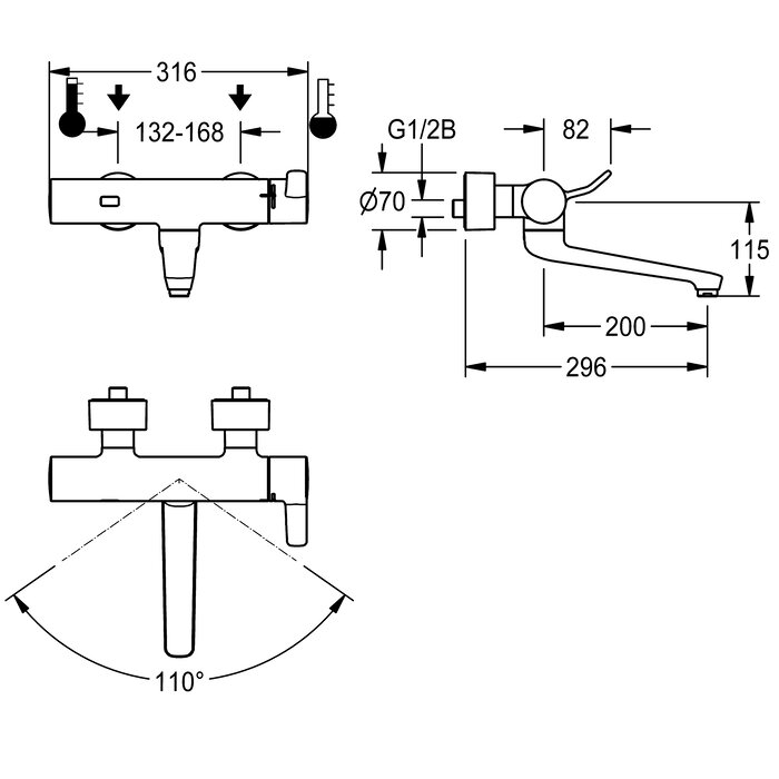 • Les mitigeurs muraux monoleviers F4LT-Med sont équipés de composants d'isolation thermique pour réduire le transfert de chaleur du corps du mitigeur vers la conduite d'eau froide